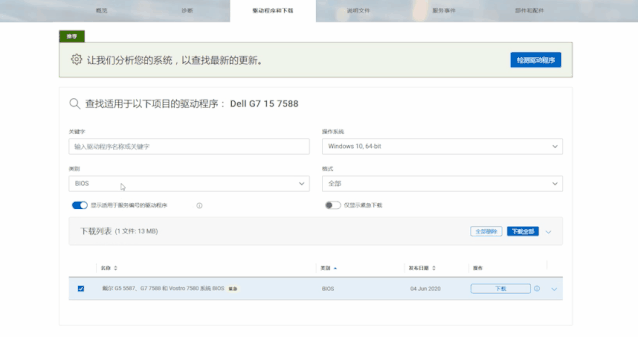 然后在类别下,选择最新版本的BIOS,并进行下载和安装。