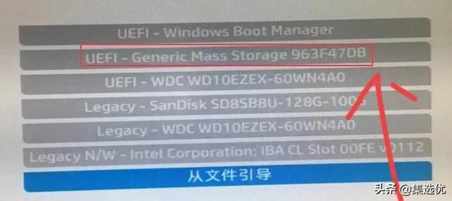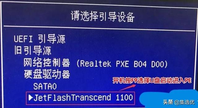 6、最后按F9快速启动后选择U盘,就会进入优盘启动(如果不行就需要启动时按ESC键),有些网友找不到那个是自己的优盘,按F9进入选择U盘启动u盘启动盘一般是优盘的名称,如下图所示;