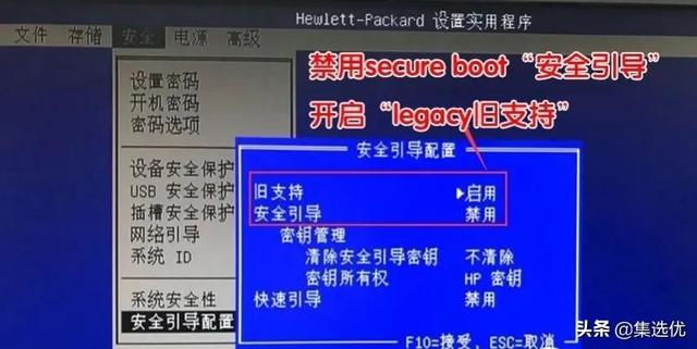 另外一种涉及到(惠普HP新机型)台式机电脑win10改装win7系统BIOS设置步骤,原理都一样,需要注意安全启动项和兼容模式项,调成中文模式的。