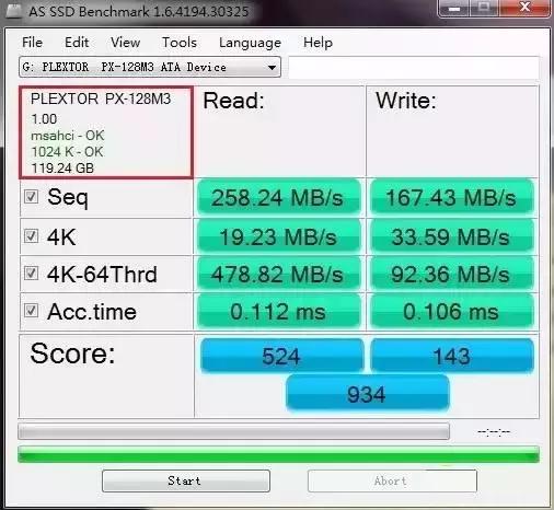 当我们看到1024的起始位置时K,那么就是4K对齐,测试结果为934。通过软件测试4K从对齐前后的测试结果可以看出,硬盘的性能提高了近30%。